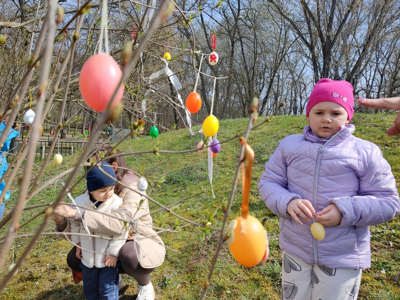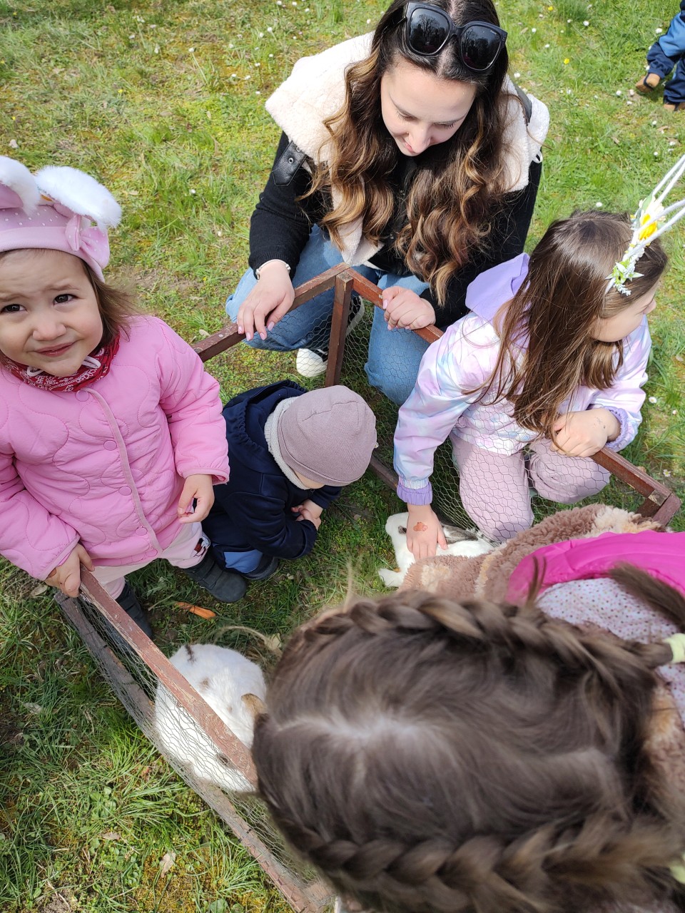 A könyvtár udvarán igazi meglepetés fogadta a gyerekeket: nyuszisimogató! A puha, barátságos tapsifülesek pillanatok alatt belopták magukat mindenki szívébe. A sok játék és móka közben természetesen nem maradhatott el a tojásfa díszítése sem.
