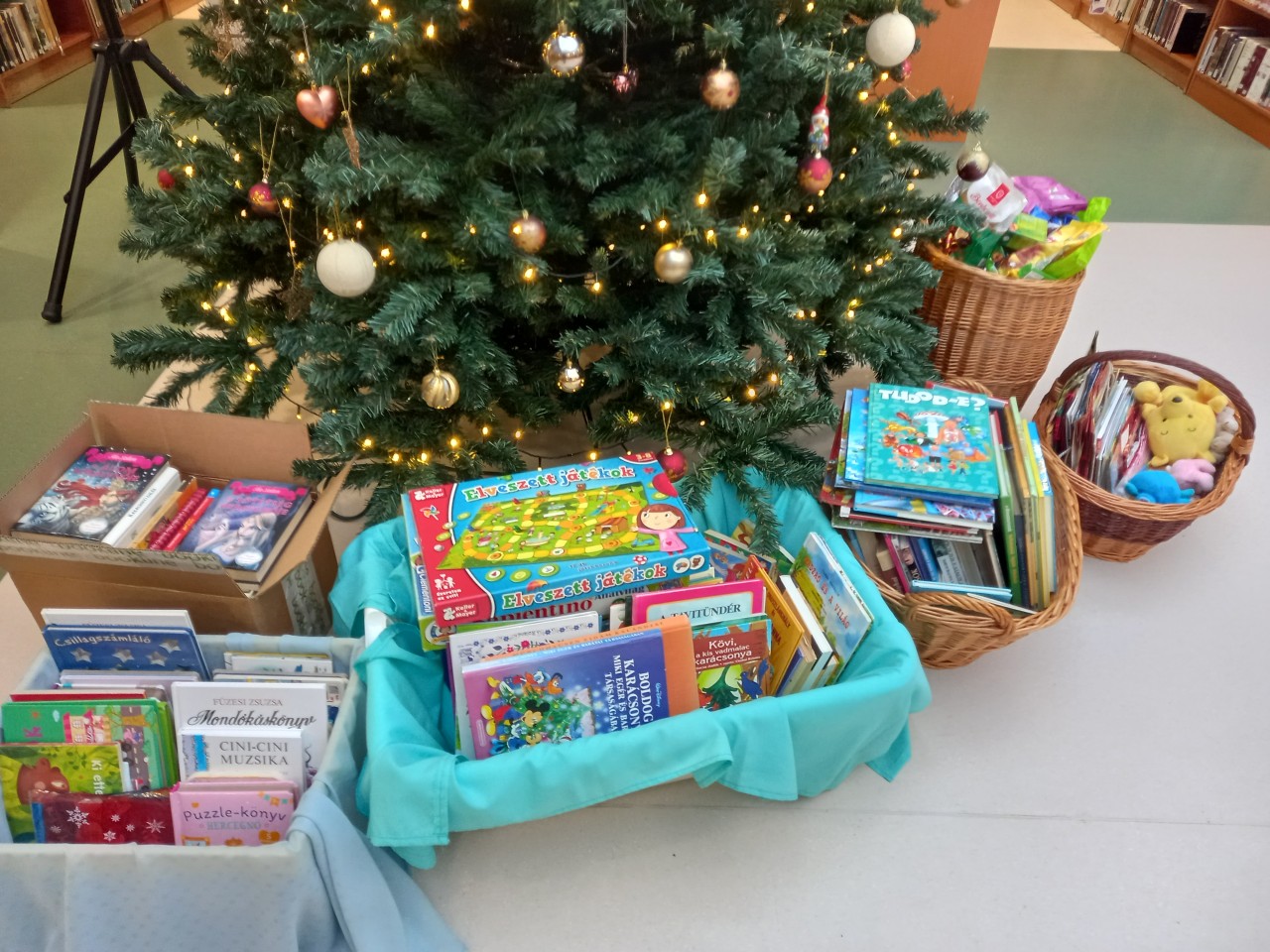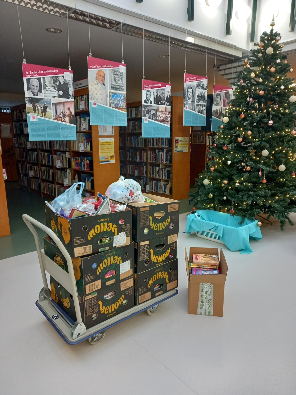 December 12-ig fogadtuk a felajánlott könyveket és édességeket, melyeket már át is adtunk a Magyar Vöröskereszt Borsod-Abaúj-Zemplén Vármegyei Szervezet képviselőjének. Fajt Renáta területi munkatárs 19 db foglalkoztató könyvet, 7 játékot, 31 db képeskönyvet, 82 db mesekönyvet, 38 db ismeretterjesztő könyvet, 56 db ifjúsági könyvet és egy nagy puttony édességet tud szétosztani a rászorulóknak.