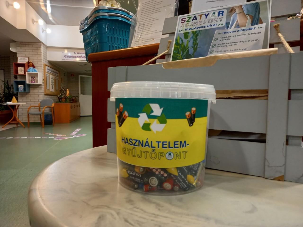 Könyvtárunk évek óta kiemelt szolgáltatásként tekint a veszélyes hulladékok, így a használtelem és a mobiltelefonok visszagyűjtésére, illetve könyvmentő polcunkon több száz könyv talált már új gazdára. Ezek gyűjtésére állandó szolgáltatásként bármikor lehetőséget biztosítunk olvasóinknak.