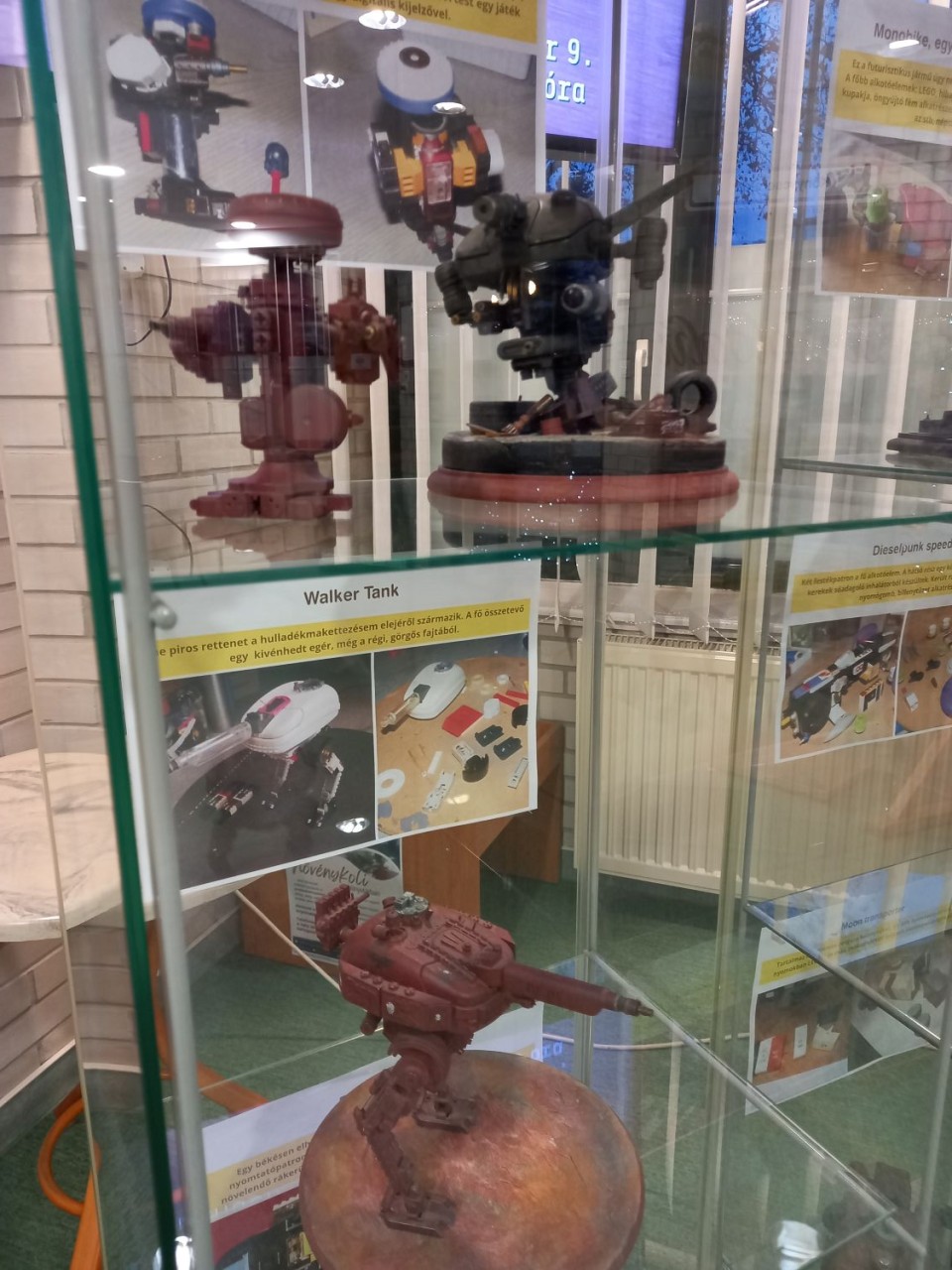 November 18-án nyílt a könyvtár Folyóiratolvasójában Kovács György makettező, dioráma készítő makettkiállítása E-hulladékból érték címmel. Számos érdekes és izgazgalmas makettet csodálhattunk meg, melyekben békésen elhalálozott optikai egértől kezdve, munkanélküli fekete nyomtatópatronon át, USB telefontöltő és számos nyomógomb, elektromos relé került beépítésre.